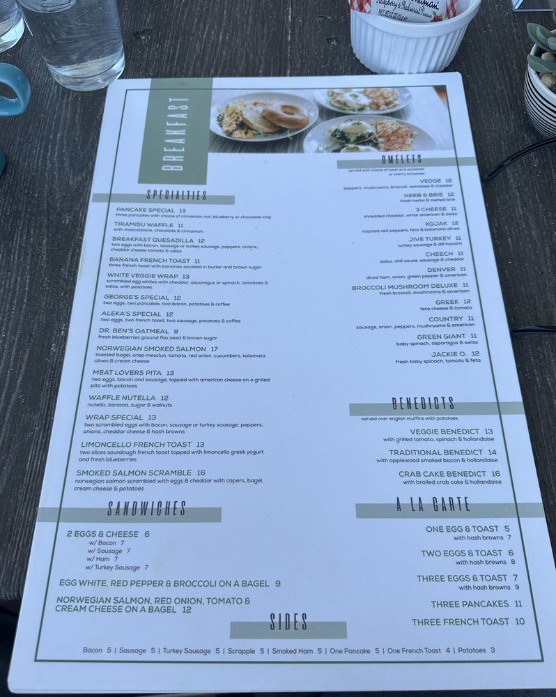 George’s Place Wildwood Crest offers a unique blend of Greek and New American cuisine in a picturesque setting overlooking the bay. The restaurant boasts outdoor seating with stunning views, perfect for a relaxing meal. Customers rave about the delicious food and top-notch service, with highlights including the Greek cheesy bread, crab cakes Benedict, and short ribs with lemon potatoes. The menu features a variety of options, from omelettes to salads to hearty main courses, all served with attention to detail. The friendly and professional staff contribute to the overall ambiance, making it a must-visit spot for breakfast, brunch, or dinner. George’s Place Wildwood Crest stands out not only for its food but also for its unforgettable dining experience, blending delectable dishes with breathtaking views.